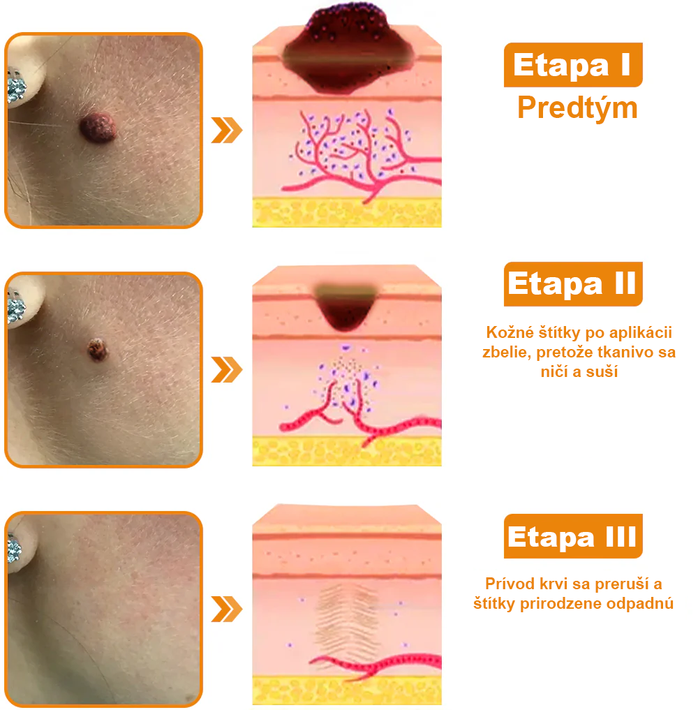 ✔ Bradavice a kožné výrastky sa prirodzene a bezbolestne odlupujú